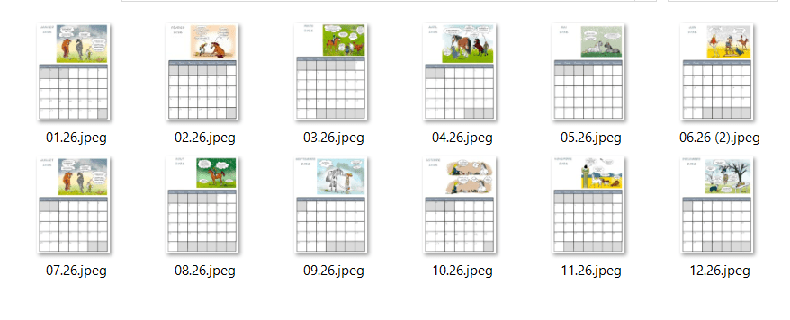 Ce calendrier au format A4 portrait utilise de préférence une feuille blanche 160 grammes.