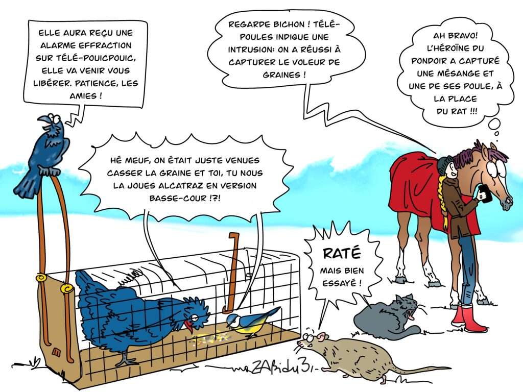 Piège à … Ah bah bravo.. le bipède a voulu jouer au tarzan des pondoirs avec son piège … Lire la suite