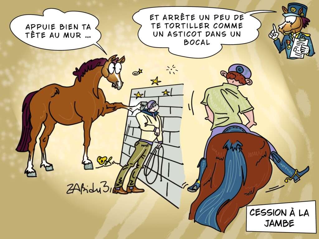 – Cession à la jambe : Je sais changer de direction de manière erratique et au petit bonheur la chance, lorsque les jambes de mon cavalier imprécis gigotent, le déstabiliser si nécessaire.